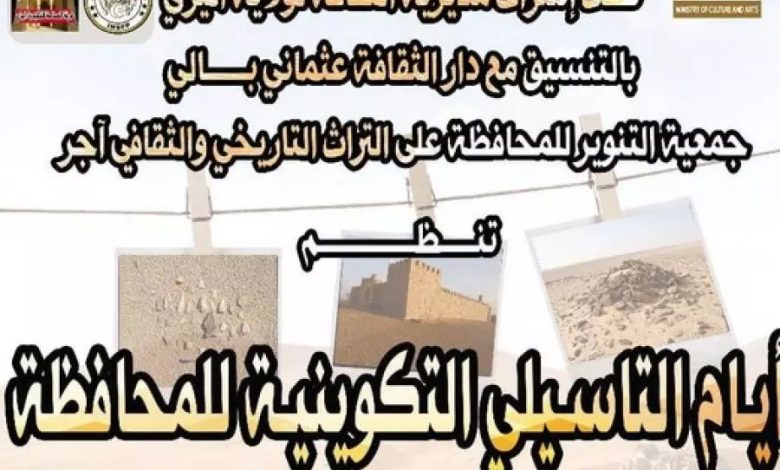 كما يشمل البرنامج ورشات تكوينية في الموروث الثقافي اللامادي إضافة إلى ورشات متخصصة حول تقنيات الحفظ والترميم للأواني الفخارية، يشرف عليها مختصون في المجال لفائدة المهتمين والباحثين والحرفيين، كما جرى شرحه.وتندرج هذه التظاهرة الثقافية في إطار سياسة الدعم العمومي للمشاريع الثقافية والفنية، حيث ستتواصل فعاليات “أيام الطاسيلي التكوينية” ببرنامج ثري ومتعدد إلى غاية يوم الأربعاء المقبل.