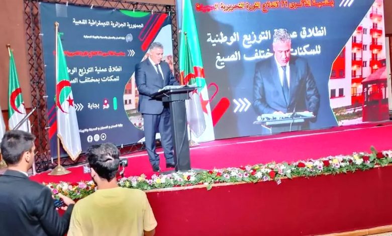 هذا و قد شهدت مختلف مناطق الوطن, اليوم الخميس, عشية الاحتفال بالذكرى الـ71 لاندلاع الثورة التحريرية المجيدة, توزيع أكثر من 144 ألف سكن بمختلف الصيغ, و تقديم إعانات مالية لبناء سكنات ريفية, في خطوة تكرس البعد الاجتماعي لسياسة الدولة و حرصها على صون كرامة المواطن. ومن ولاية بجاية, أعطى وزير السكن والعمران والمدينة والتهيئة العمرانية, محمد طارق بلعريبي, اشارة انطلاق توزيع 144.601 وحدة سكنية من مختلف الصيغ عبر كامل ولايات الوطن.وأشرف الوزير على توزيع 509 وحدة سكنية من صيغة العمومي الايجاري لفائدة طالبي السكن ببجاية, وكذا 2045 مقرر استفادة من الاعانات الموجهة لبناء السكن الريفي.وبالمناسبة, أعلن السيد بلعريبي عن انطلاق أشغال إنجاز 60.000 وحدة سكنية بصيغة البيع بالإيجار (عدل 3) عبر مختلف ولايات الوطن خلال نوفمبر المقبل.