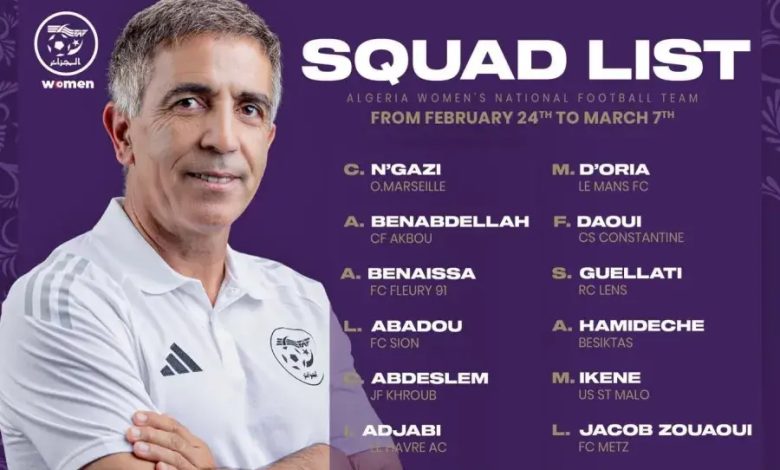 وخلال هذا التربص، الذي يتنقل فيه إلى القاهرة (من 26 فبراير إلى 4 مارس)، سيخوض المنتخب الوطني هناك مقابلتين وديتين أمام نظيره المصري للسيدات بالقاهرة.وتعود التشكيلة الوطنية إلى الجزائر يوم 4 مارس لمواصلة التحضيرات بالمركز التقني الوطني بسيدي موسى إلى غاية اختتام التربص في التاريخ المحدد.وكانت قرعة كأس إفريقيا للأمم للسيدات (كان 2026) قد أوقعت المنتخب الوطني في المجموعة الأولى، إلى جانب منتخبات السنغال، كينيا، والمغرب.