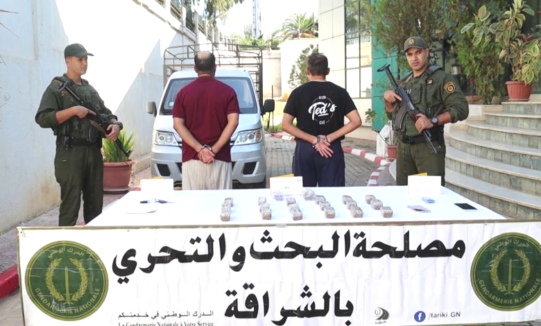 وأسفرت العملية عن “توقيف شخصين على متن مركبة بداخلها حقيبة بها كمية من الكيف المعالج مقدرة ب20 صفيحة بوزن إجمالي قدره 2 كغ, مع حجز المركبة المستعملة, فيما يبقى شخصان في حالة فرار”.وبعد استيفاء جميع الإجراءات القانونية سيتم تقديم المشتبه فيهم أمام الجهات القضائية المختصة, وفقا للمصدر ذاته.