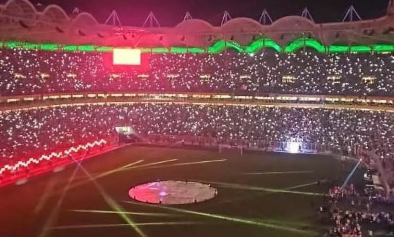 وقد تميز هذا الحفل بمشاركة نخبة من الفنانين الذين قدموا باقة من الأغاني الوطنية والرياضية تعكس مختلف الطبوع الجزائرية وتبرز التنوع والثراء الثقافي للجزائر.